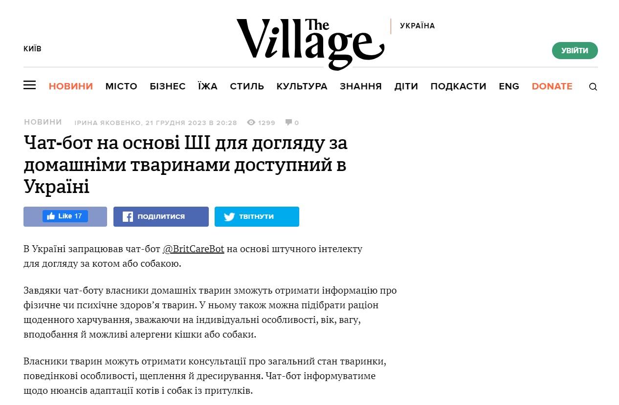 І головне — лише за 3 тижні від моменту запуску чатботом скористалися понад 2400 користувачів отримавши корисні поради як покращити життя своїх улюбленців.