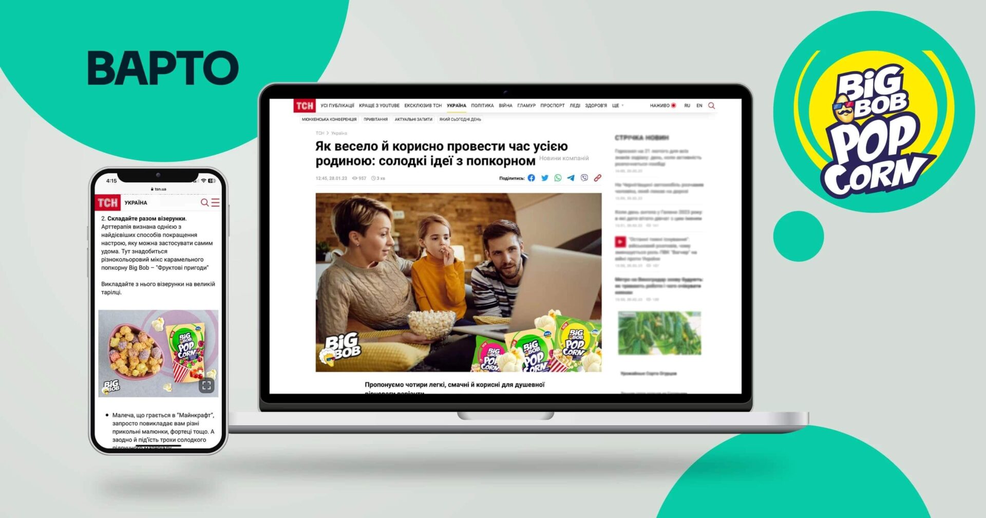 Popcorn is an unexpected and tasty solution for warm winter holidays and family leisure. Through the large-scale information campaign “WARTO” for the Big Bob brand, we told more than 8 million Ukrainians about it.